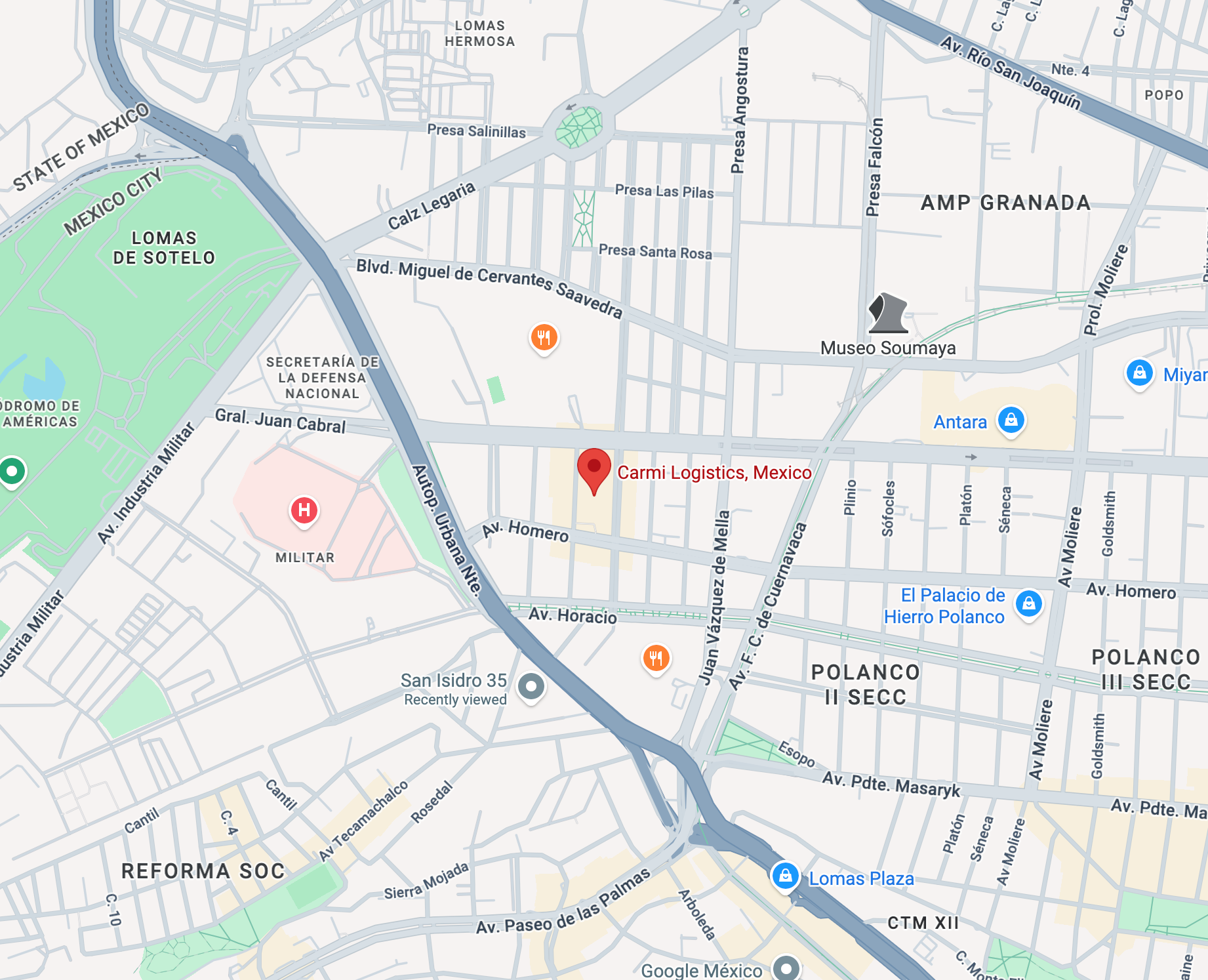 Polanco, CDMX, | Aguascalientes, AS AICM, CDMX | Altamira, TS | Cd. Juárez, CH | Colombia, NL | Dallas, TX | El Paso, TX | Guadalajara, JC | Houston, TX | Laredo, TX | Lázaro Cárdenas, MN | Manzanillo, CM | Matamoros, TS | Monterrey, NL | Nuevo Laredo, TS | Querétaro, QR | Reynosa, TS | San Luis Potosí, SP | Tampico, TS | Veracruz, VZ